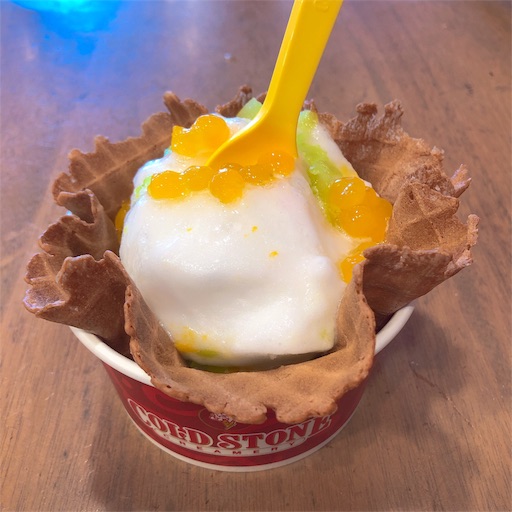 見た目重視でワッフルコーンで注文。